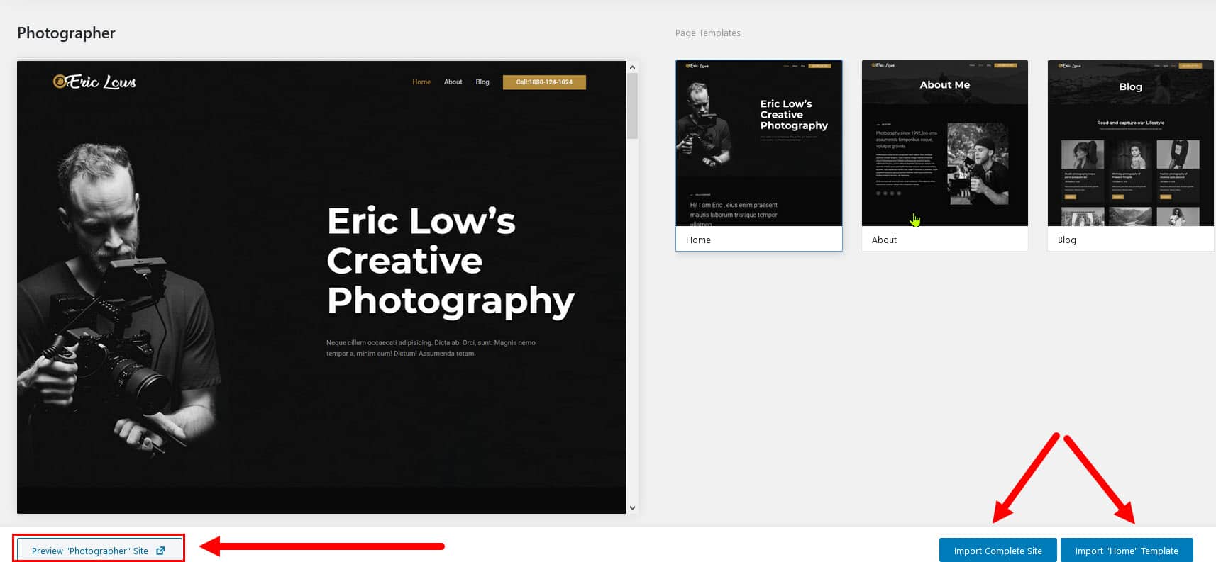 The Starter Templates plugin offers you a library of starter sites from which to choose to help you get your site up and running quickly.